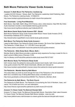 Read Online Beth Moore Patriarchs Study Guide Answers PDF online is a convenient and frugal way to read Beth Moore Patriarchs Study Guide Answers you love right from the comfort of your own home. Yes, there sites where you can get PDF "for free" but the ones listed below are clean from viruses and completely legal to use.